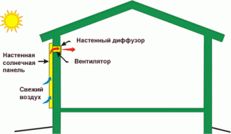 Air solar collectors - are devices running on solar energy and heating the air. Solar air collectors are often simple flat-plate collectors are used primarily for space heating, drying of agricultural products. The air passes through the absorber by natural convection, or under the influence of the fan. Because air conducts heat worse than the liquid, it passes the absorber is less heat than the heat transfer fluid. In some solar air heater to the absorbing plate attached fans that increase air turbulence and improve heat transfer. The disadvantage of this design is that it consumes energy for the fans, thus increasing the cost of operating the system. In cold climates, air is directed into the gap between the plate-absorber and insulated rear wall of the collector: thus, avoid heat loss through the glazing. However, if the air is heated by no more than 17 ° C above ambient temperature, coolant can be circulated on both sides of the absorber plate without much loss of efficiency.